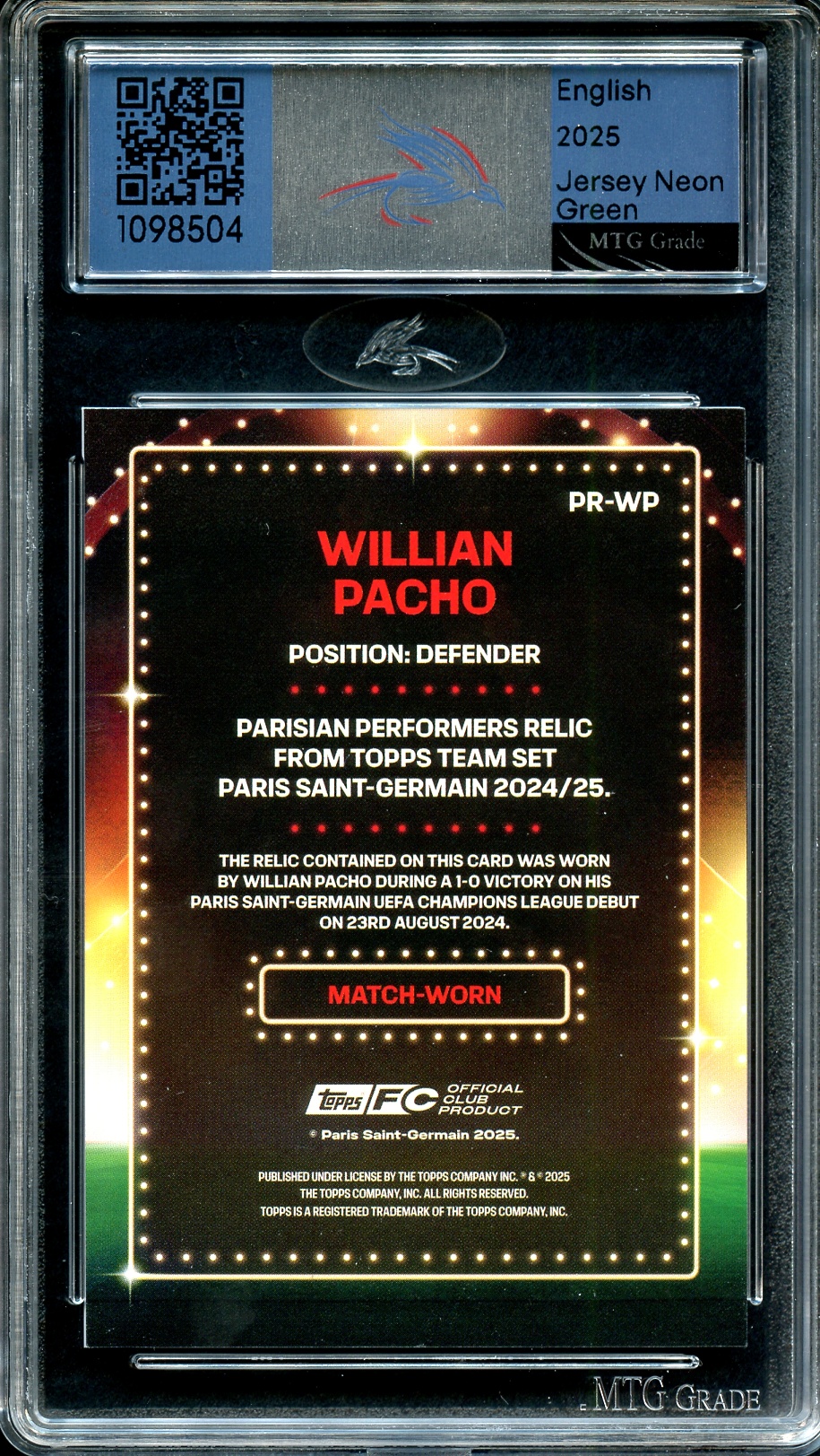 Édition : PR-WP - Topps PSG Team Set - Parisian Performers Relics 2024-25 (045/199)