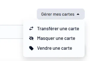 Pour mettre l’une de vos cartes en vente il vous suffit de vous rendre sur votre compte-client > Mes Cartes